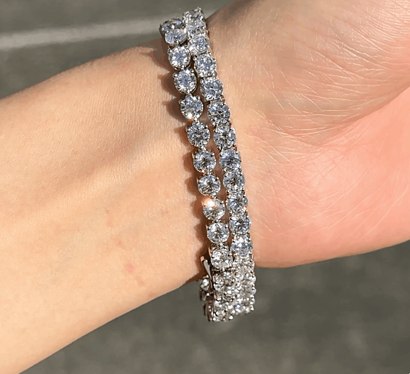 테니스 브레이슬릿, 화이트골드, 라운드 다이아몬드, D 및 VVS IDEAL 등급의 0.1 - 0.3캐럿 랩다이아몬드.