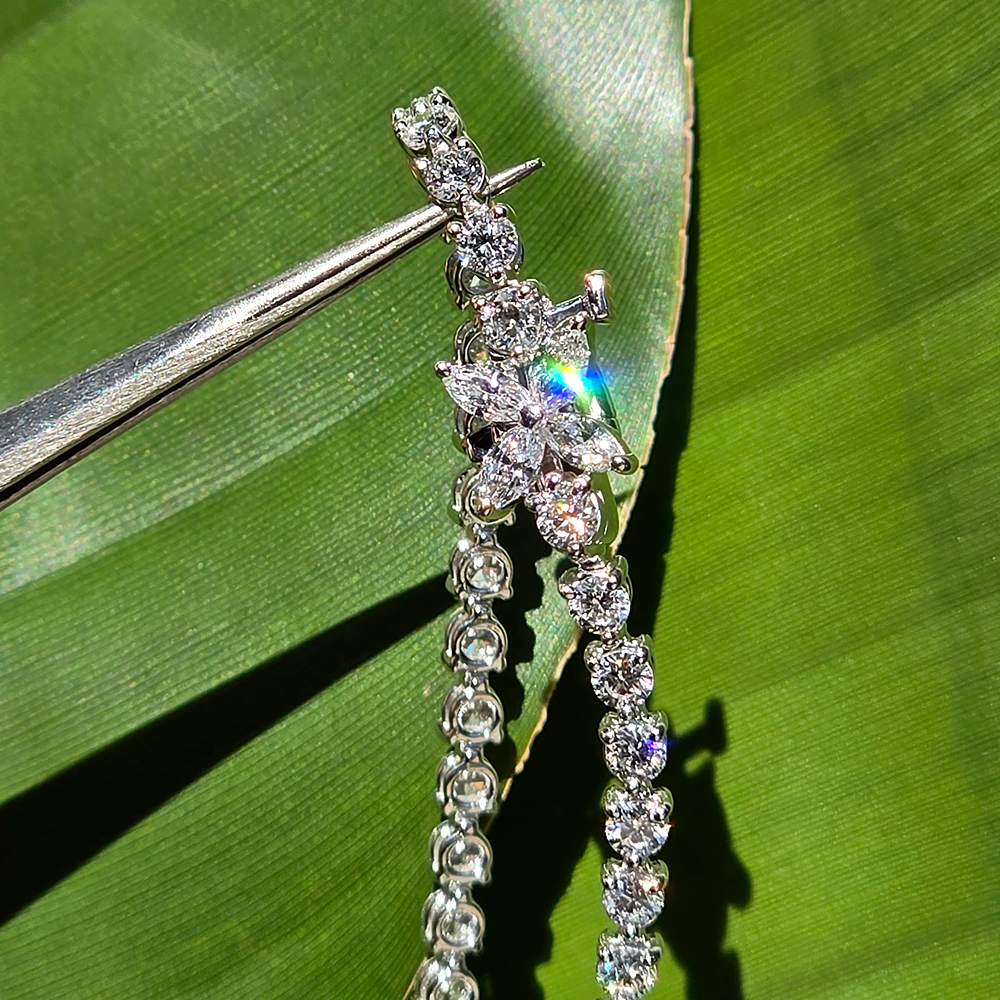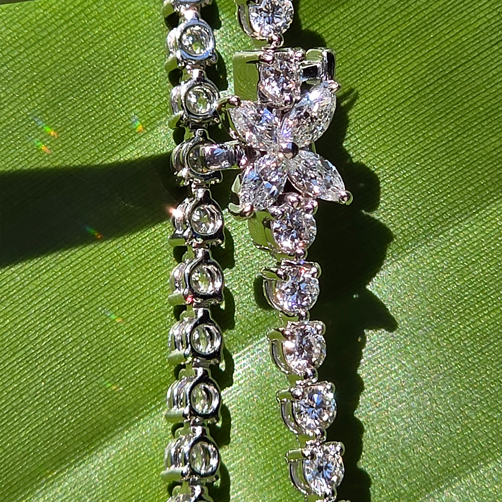 빅토리아 테니스 브레이슬릿, 화이트골드, 마르퀴즈 다이아몬드, D 및 VVS 등급의 0.1캐럿 라운드 랩다이아몬드.