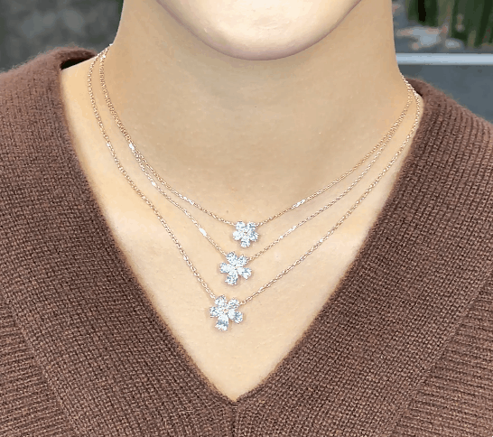 페어 쉐입 클러스터 네크리스, 화이트골드 & 로즈골드 & 옐로우골드, 페어 쉐입, DEF 및 VVS 등급의 랩다이아몬드.