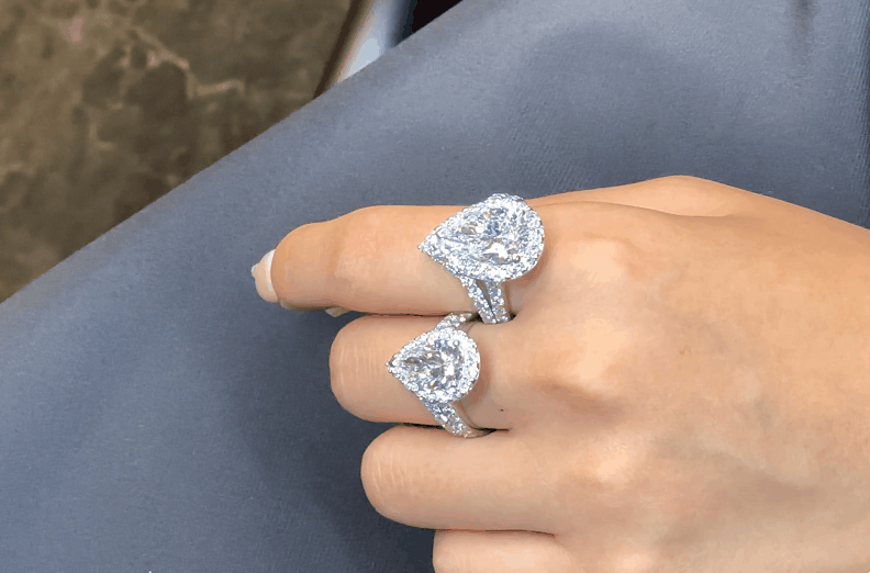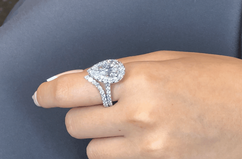 인게이지먼트 링, 화이트골드, 페어 다이아몬드, D 및 VVS 등급의 1 - 5캐럿 랩다이아몬드. D및 3EX 등급의 멜리다이아몬드.