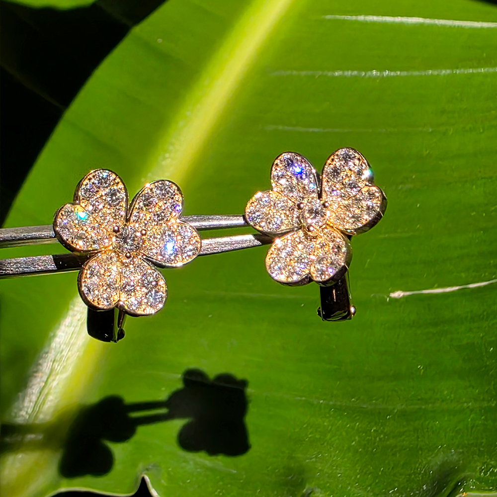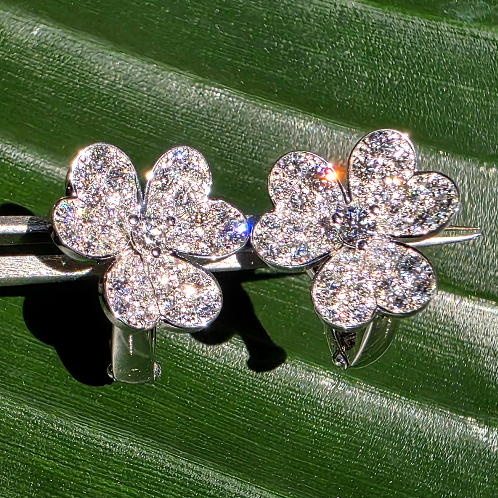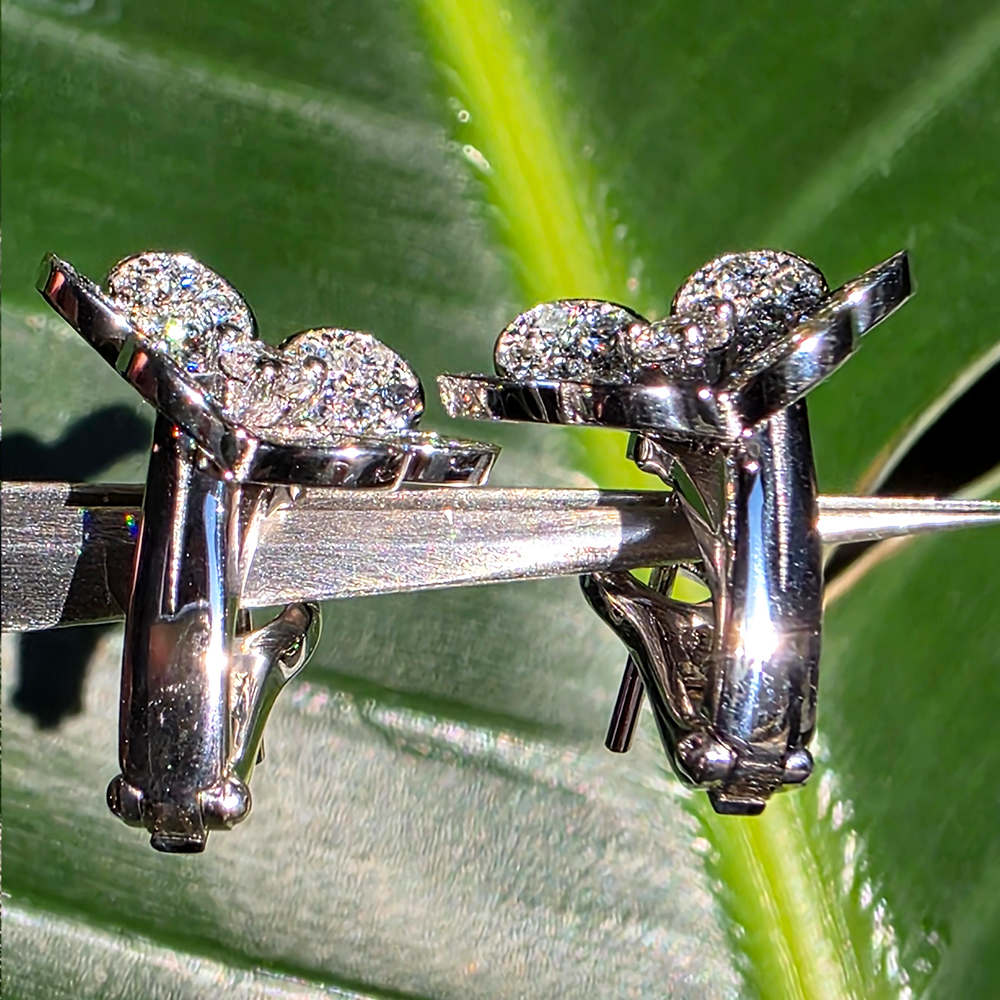 프리볼 귀걸이, 화이트골드, 라운드 다이아몬드, D 및 VVS 등급의 3EX 랩다이아몬드.