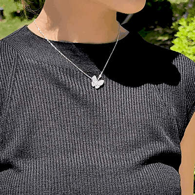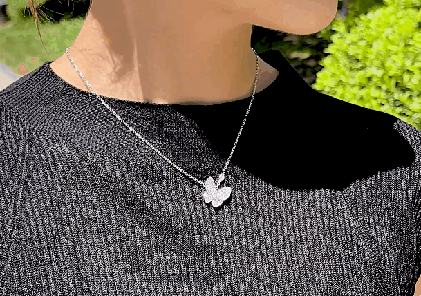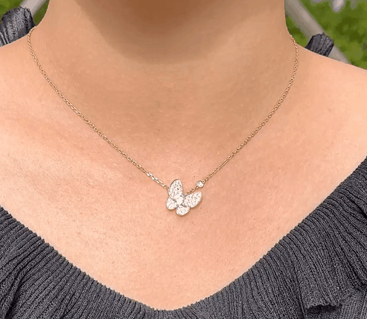 투 버터플라이 네크리스, 화이트골드, 라운드 다이아몬드, D 및 VVS 등급의 천연다이아몬드
