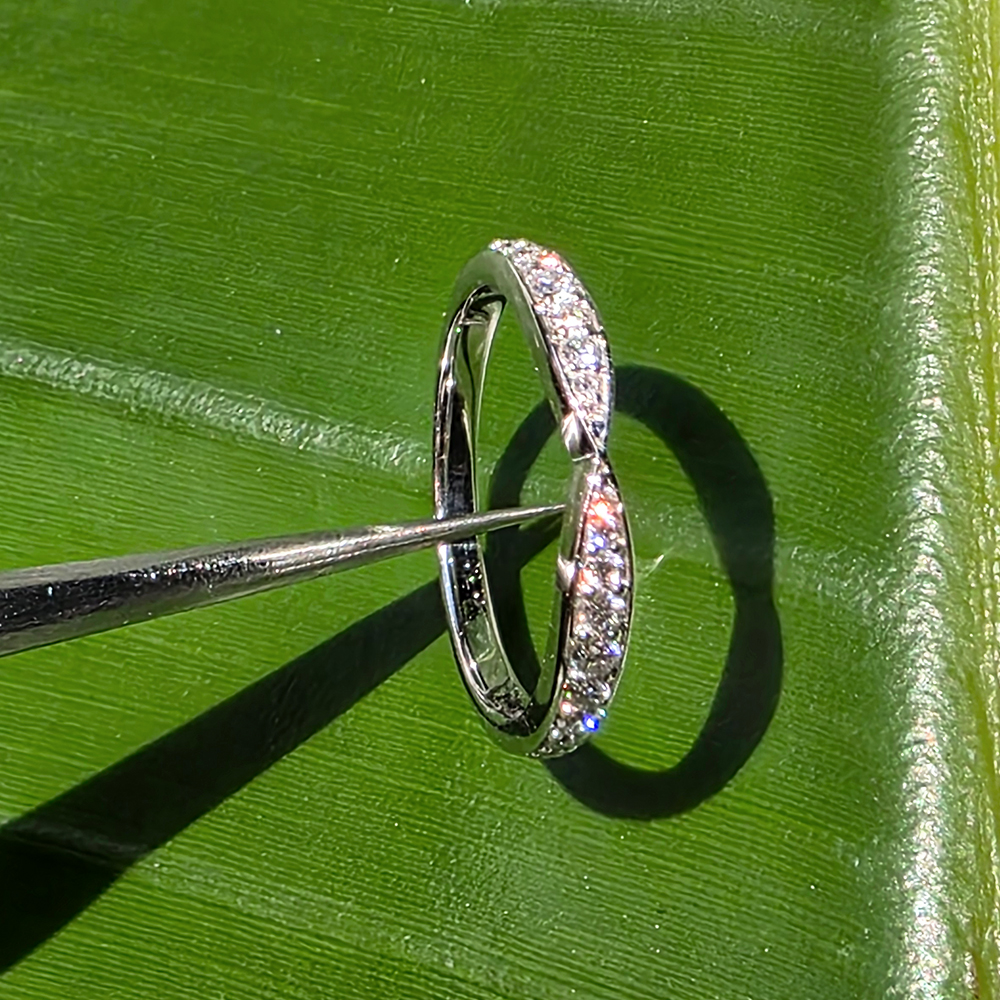 하모니 밴드 링, 화이트 & 로즈 & 옐로우골드, 라운드 다이아몬드, DEF및 VVS 등급의 랩다이아몬드.