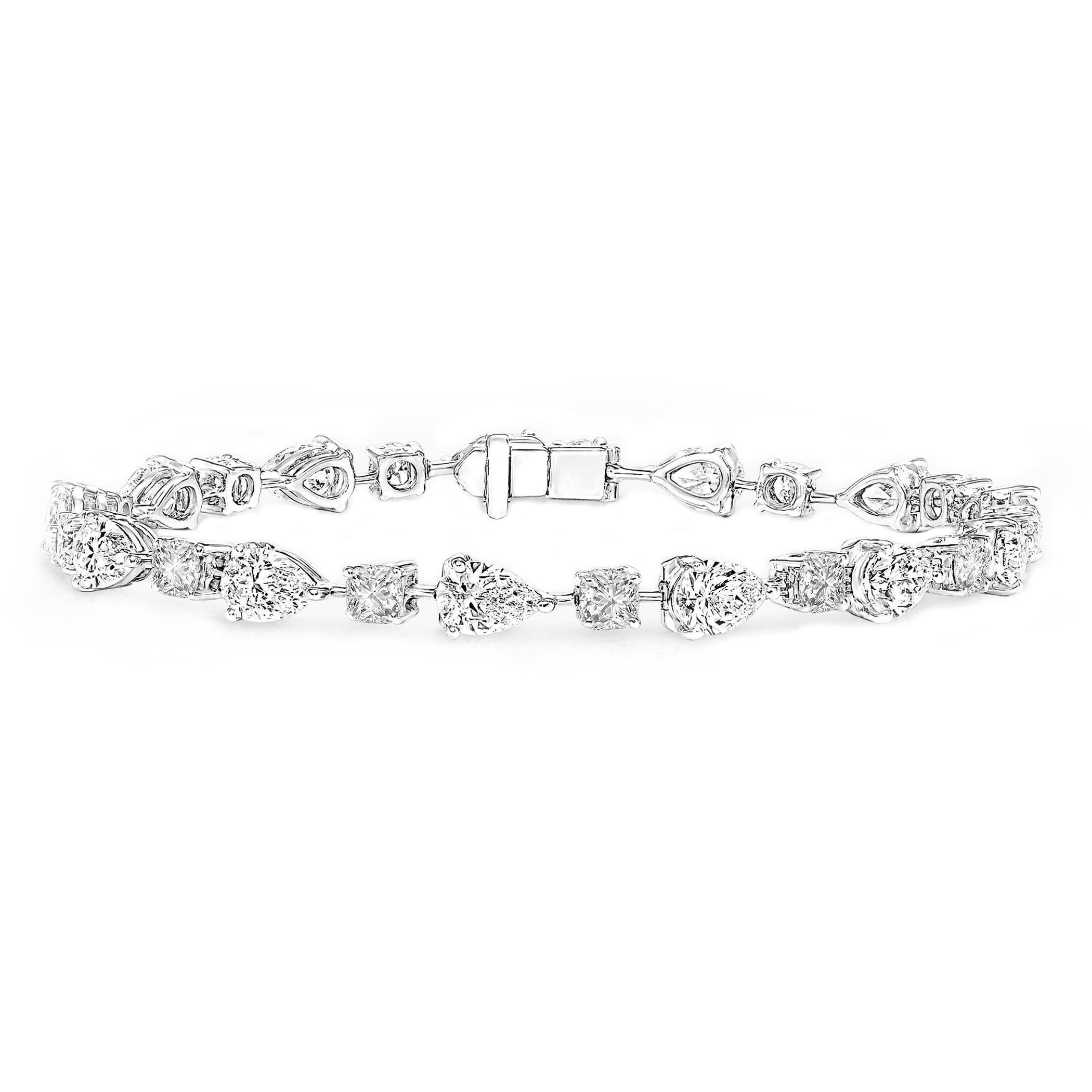 클래식 테니스 브레이슬릿, 화이트골드, 페어 & 쿠션 다이아몬드, D및 VVS IDEAL 등급의 0.2 ~ 0.7캐럿 랩다이아몬드.