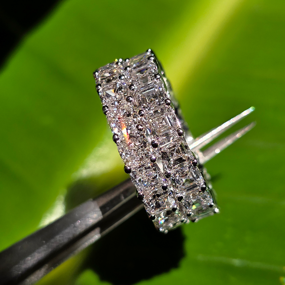 이터너티 링, 화이트골드, 애셔 다이아몬드, D 및 VVS 등급의 0.15 - 0.5캐럿 랩다이아몬드.