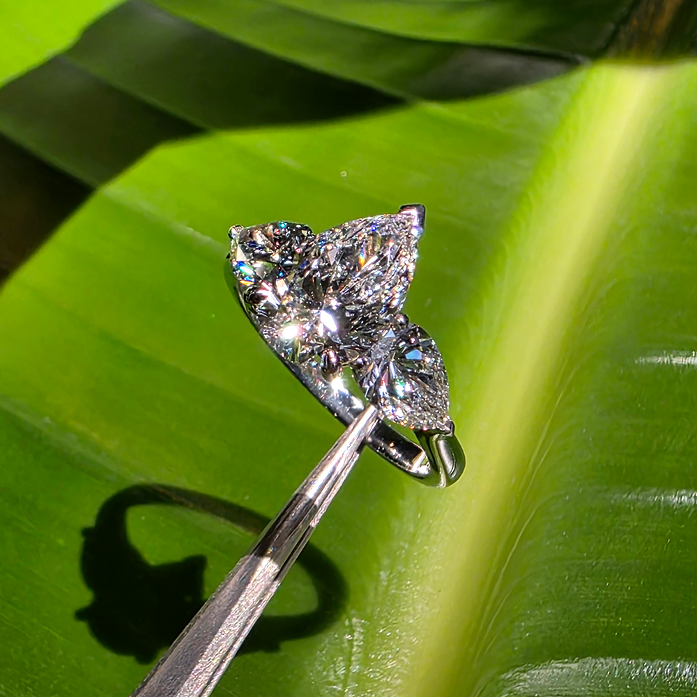 쓰리스톤 링, 화이트골드, 페어 다이아몬드, D 및 VVS IDEAL 등급의 1 ~ 3캐럿 랩다이아몬드.