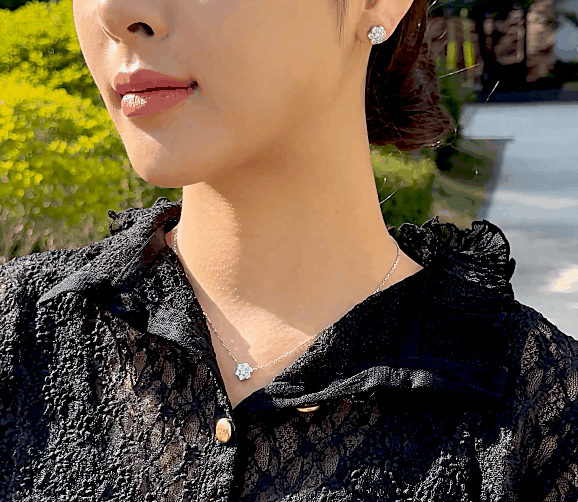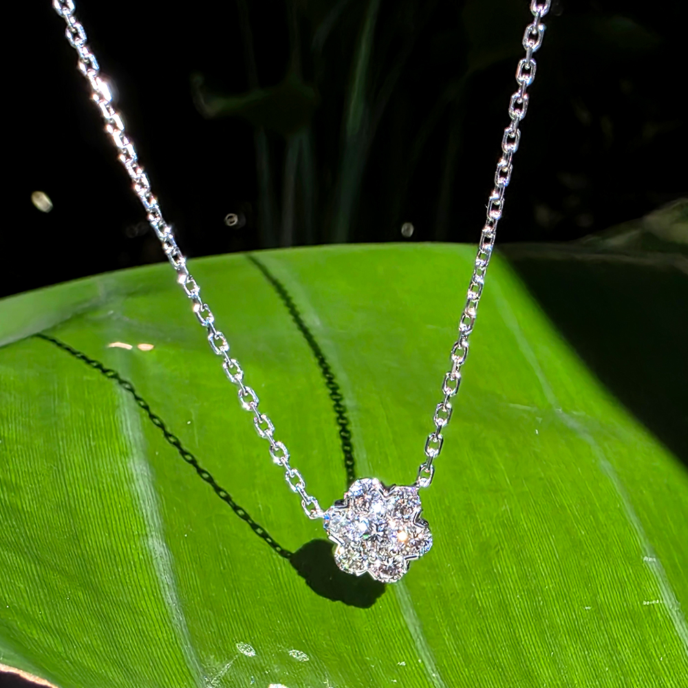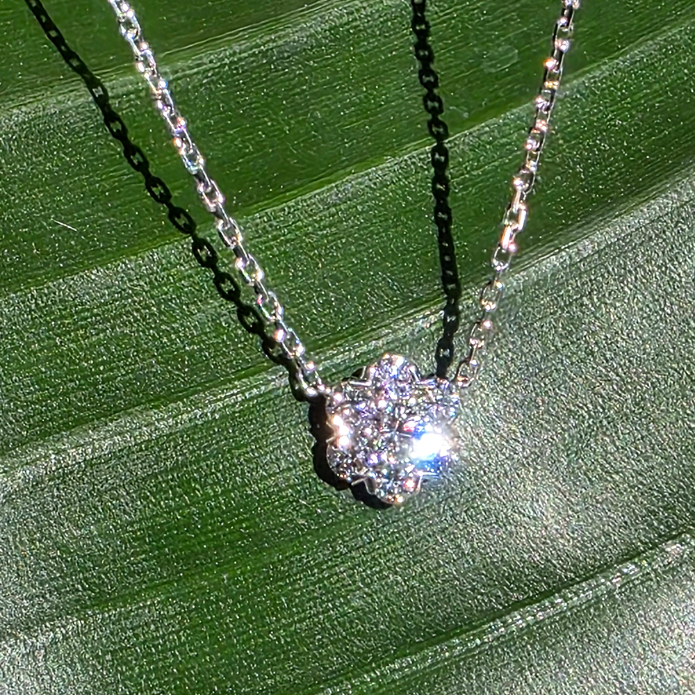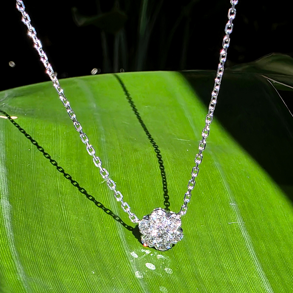 플로레뜨 네크리스, 화이트골드, 라운드 다이아몬드, D 및 VVS 등급의 랩다이아몬드.