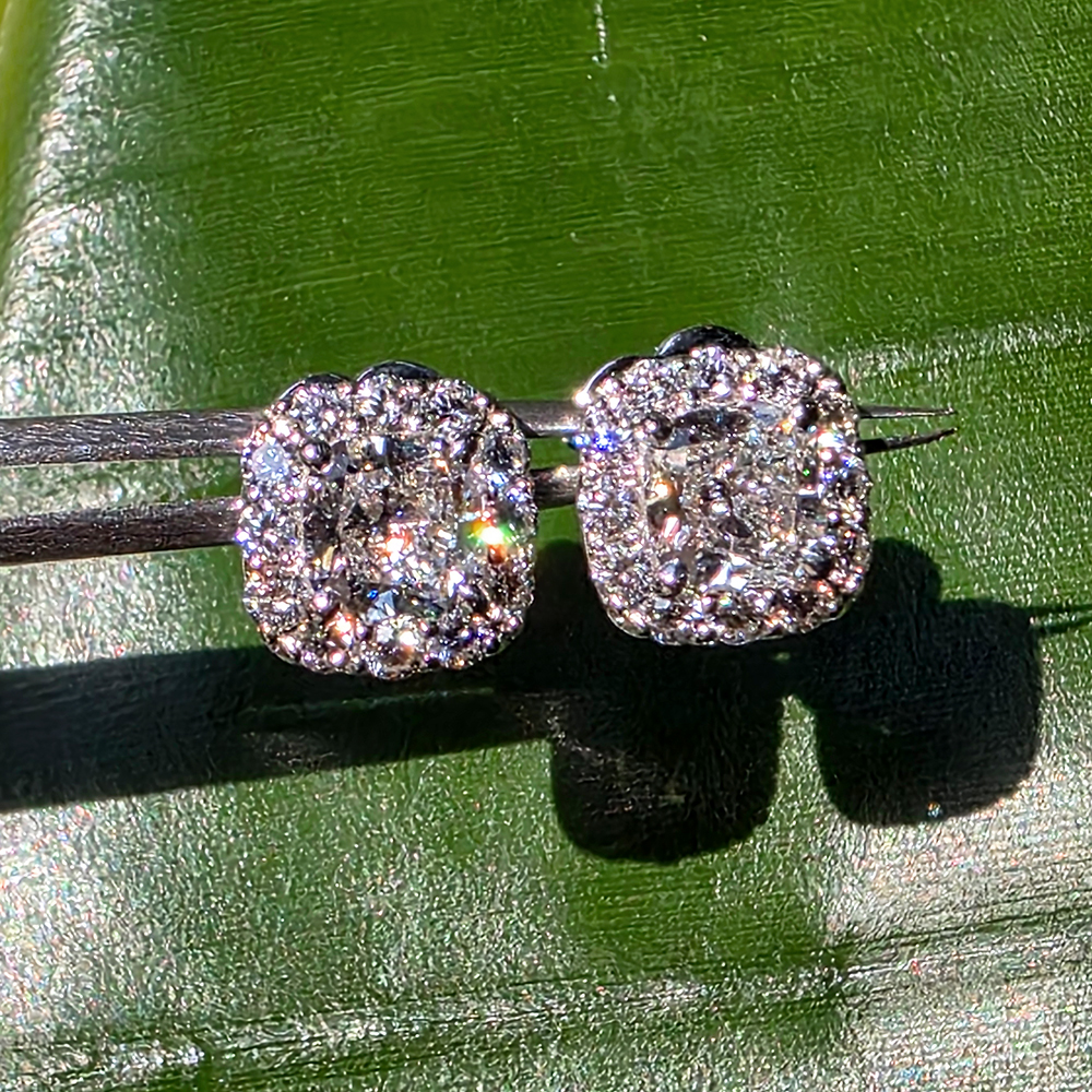 인게이지먼트 이어링, 화이트골드, 쿠션 다이아몬드, D및 VVS IDEAL 등급의 1 - 2캐럿 랩다이아몬드. D 및 3EX 등급의 멜리다이아몬드.