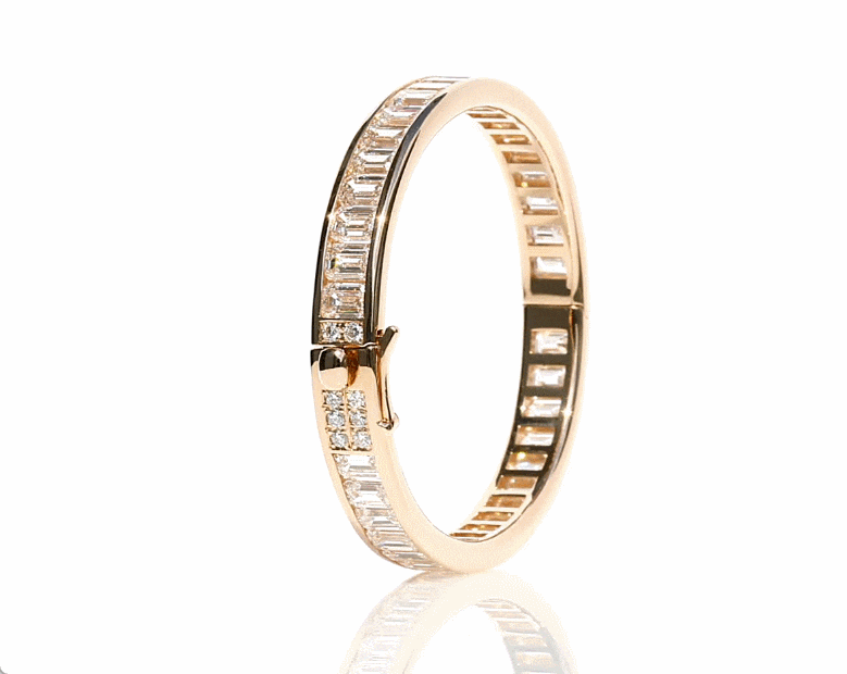 에메랄드컷 채널세팅 테니스팔찌, 화이트골드, 에메랄드 다이아몬드, D 및 VVS IDEAL 등급의 0.2 ~ 0.4캐럿 랩다이아몬드.