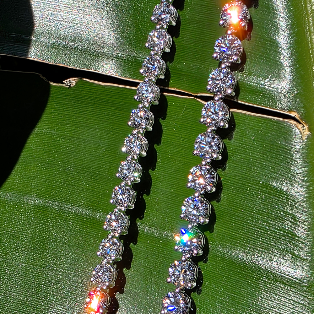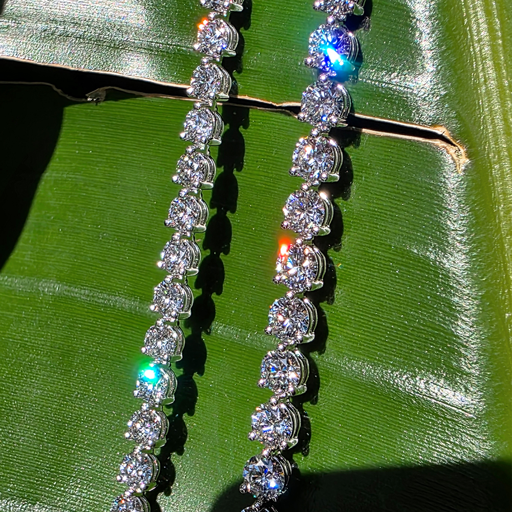 테니스 브레이슬릿, 화이트골드, 라운드 다이아몬드, D 및 VVS IDEAL 등급의 0.1 - 0.3캐럿 랩다이아몬드.