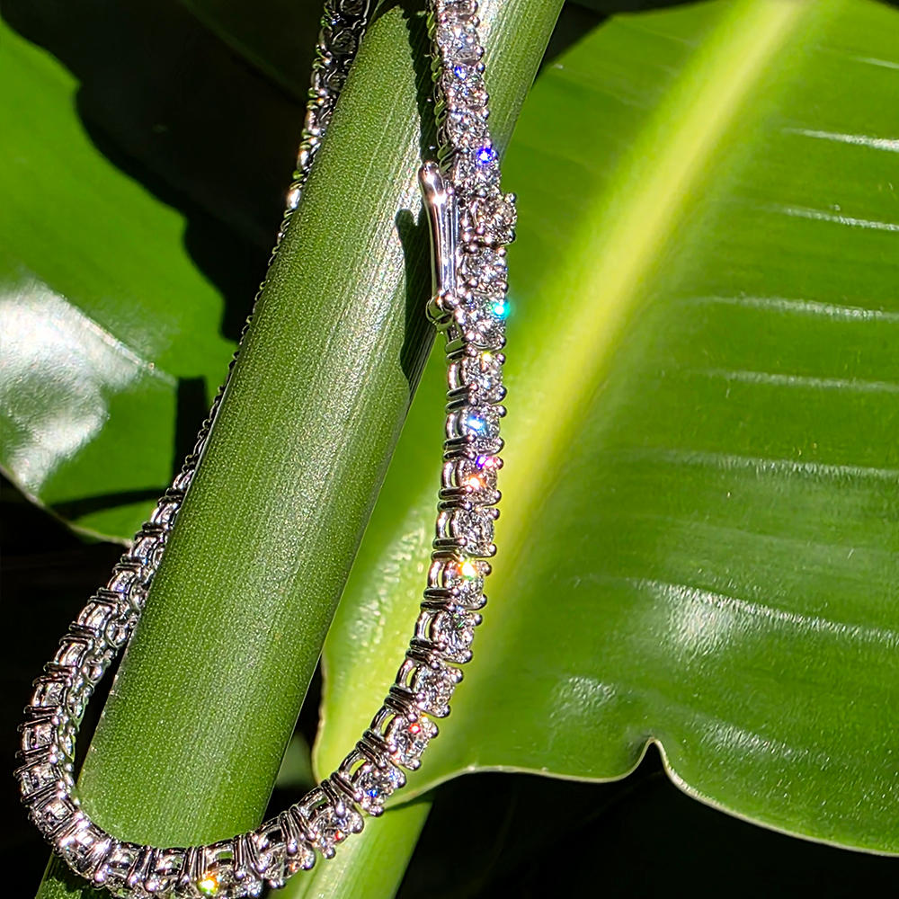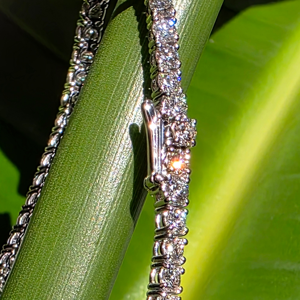 테니스 브레이슬릿, 화이트골드, 라운드 다이아몬드, D 및 VVS IDEAL 등급의 0.1 - 0.3캐럿 랩다이아몬드.