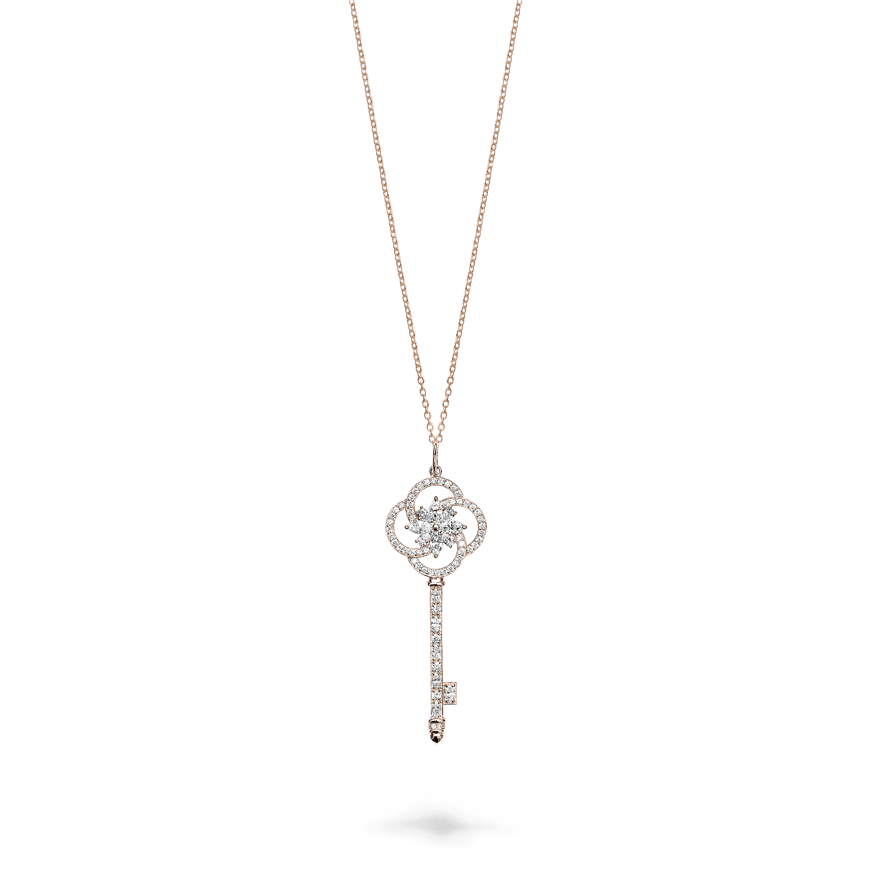 빅토리아 열쇠 펜던트, 화이트골드, 로즈골드, D 및 VVS 3EX 등급 랩다이아몬드.