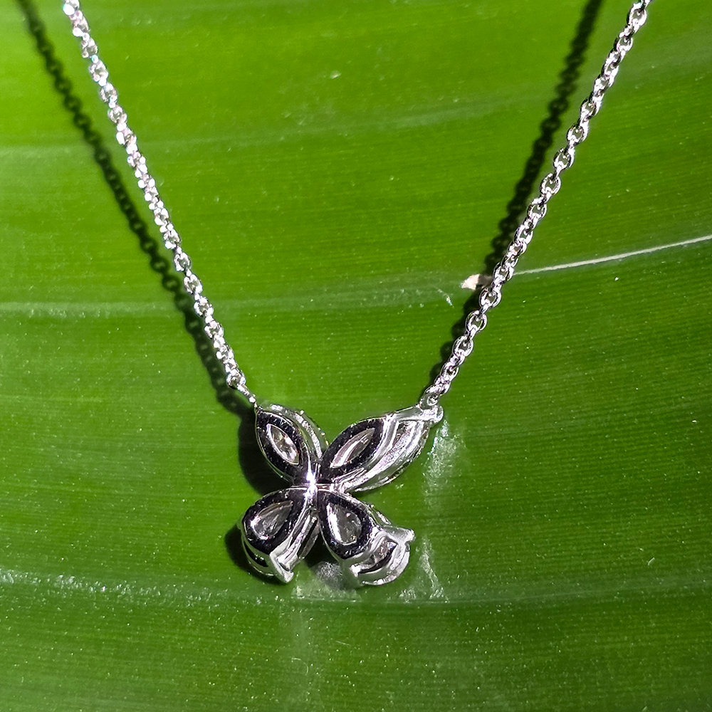 클래식 버터플라이 네크리스, 화이트골드, 마퀴즈 & 페어 다이아몬드, D 및 VVS 등급의 다이아몬드