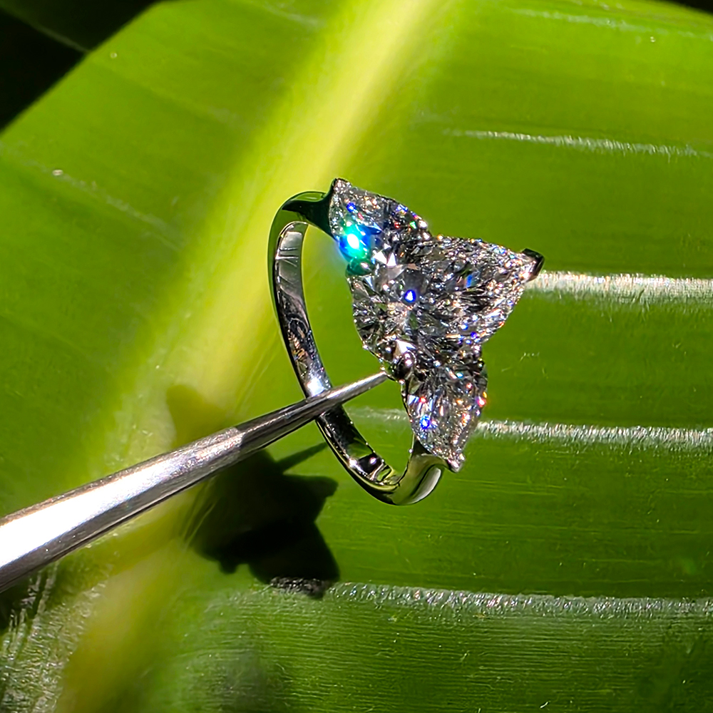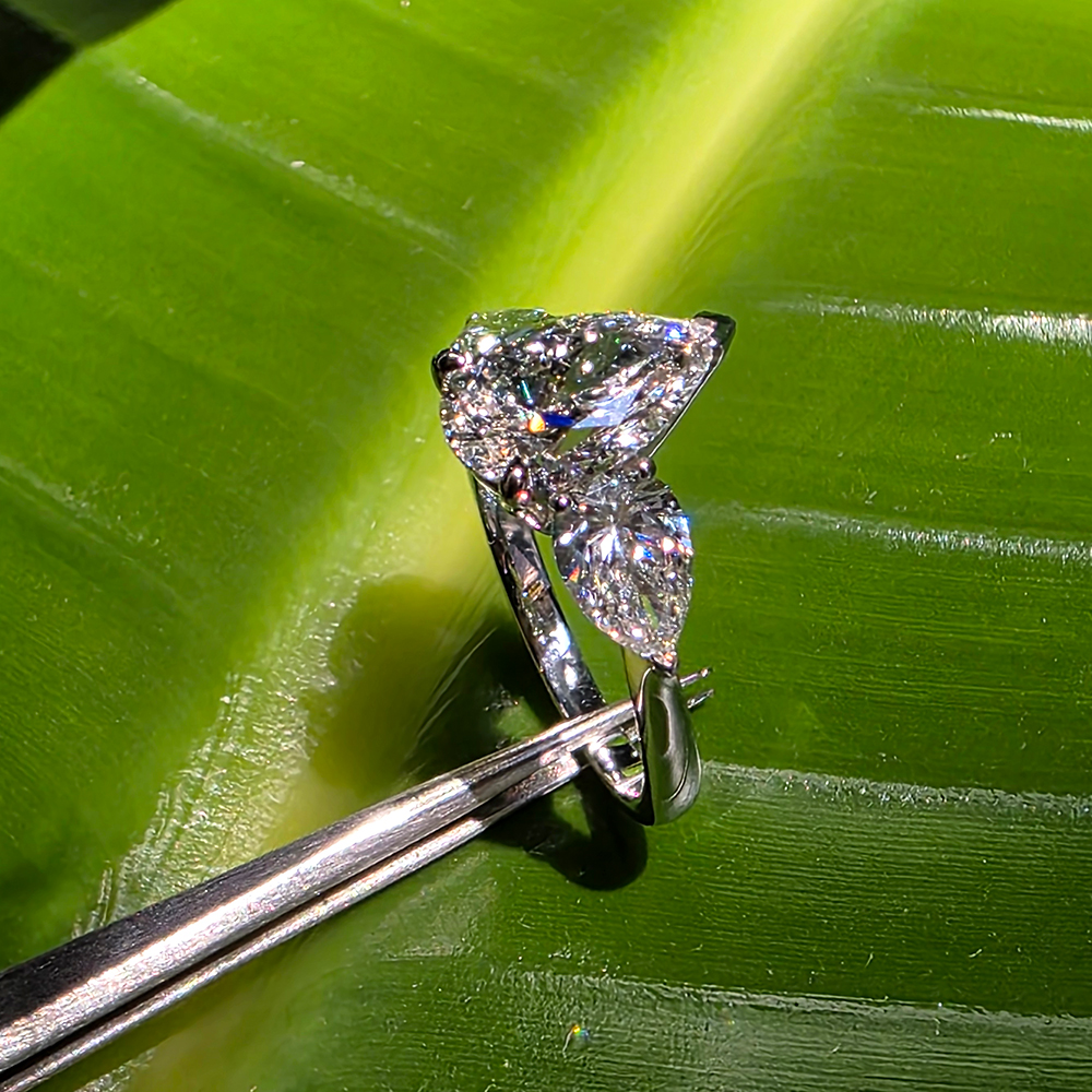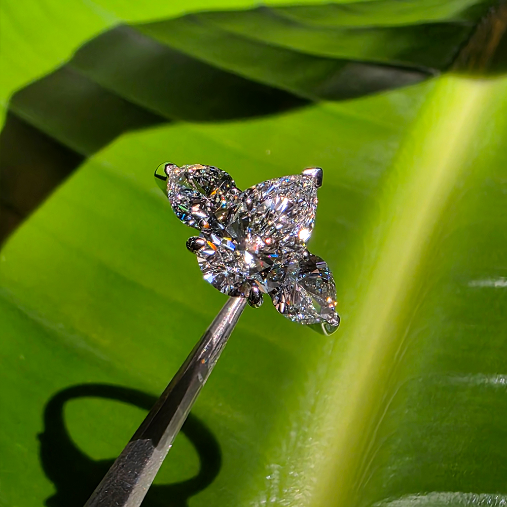 쓰리스톤 링, 화이트골드, 페어 다이아몬드, D 및 VVS IDEAL 등급의 1 ~ 3캐럿 랩다이아몬드.