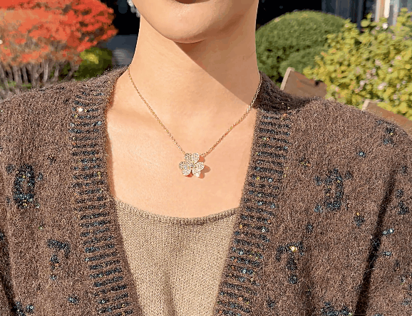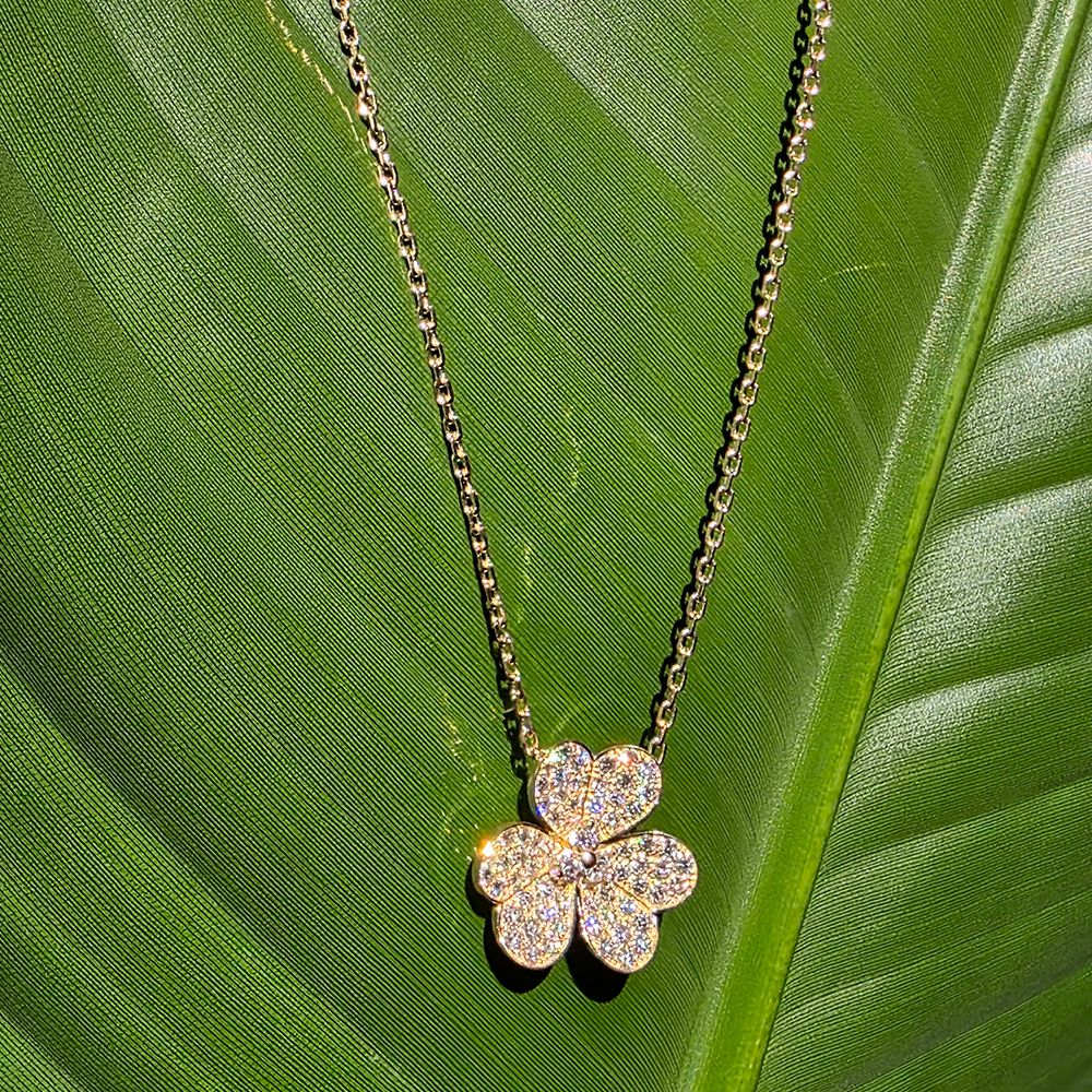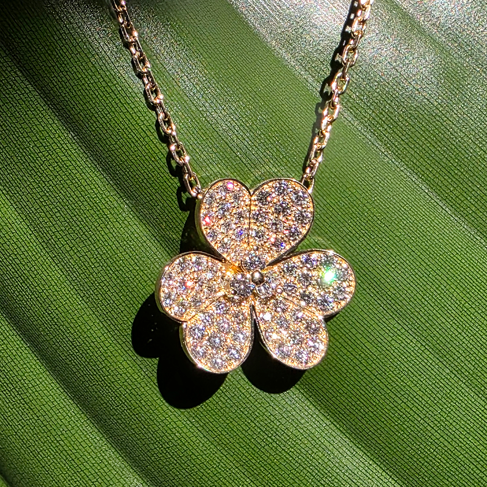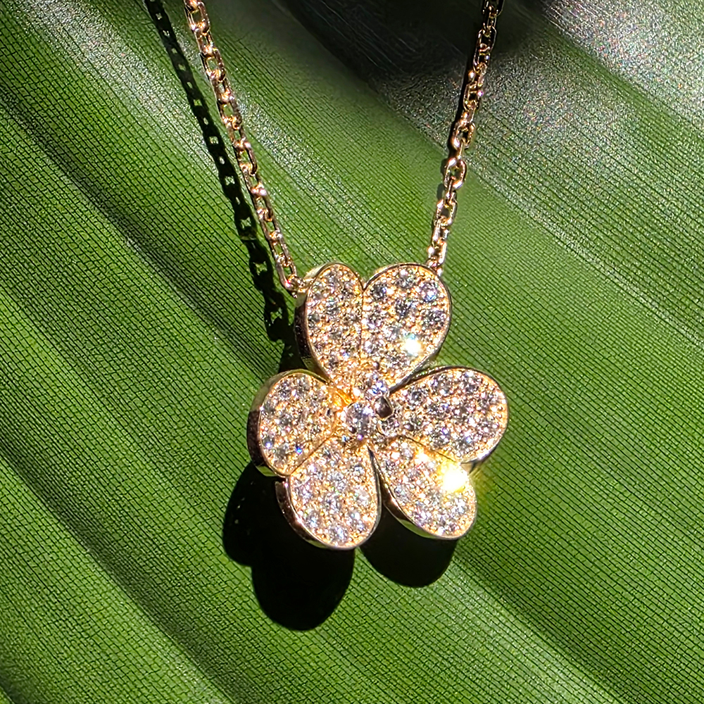 프리볼 라지 네크리스, 옐로골드, 라운드 다이아몬드, D 및 VVS 3EX 등급의 랩다이아몬드.