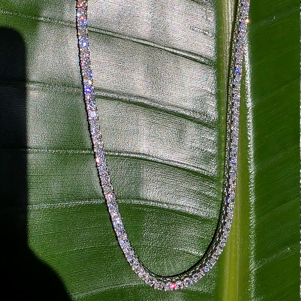 클래식 테니스 네크리스, 화이트골드, 쿠션컷 다이아몬드, D 및 VVS 등급의 랩다이아몬드.