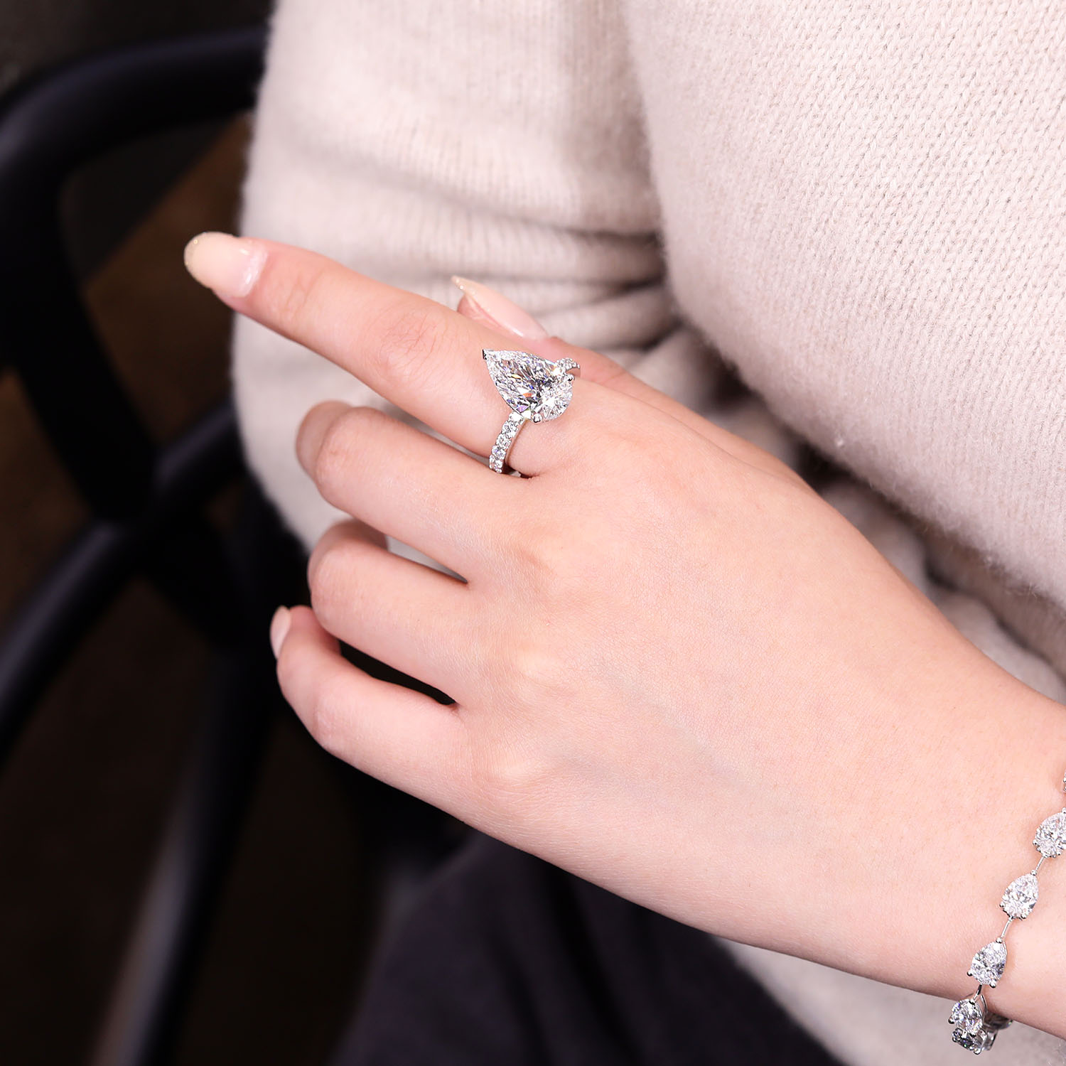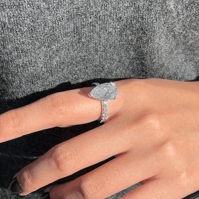 인게이지먼트 링, 화이트골드, 페어 다이아몬드, D 및 VVS 등급의 1 - 5캐럿 랩다이아몬드. D및 3EX 등급의 멜리다이아몬드.